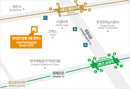 봉은사역 7번출구 방향 지하로 연결된 코엑스몰 진입 후 아쿠아리움 방향으로 도보로 약 5분 |